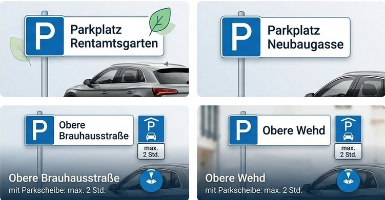 In unmittelbarer Nähe der Praxis stehen Ihnen folgende Parkplätze zur Verfügung: